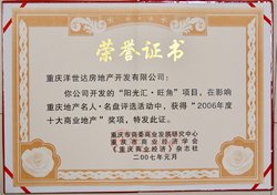 ? 2006年,洋世達.陽光匯榮獲“2006年重慶地產創新樓盤”稱號