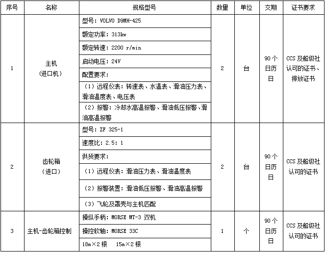 本項目適用于重慶帝力游艇制造有限公司:南部縣地方海事處33米應急救援艇機電設備采購機械設備采購部分,該項已具備招標條件,先對該項目進行單一來源采購招標。