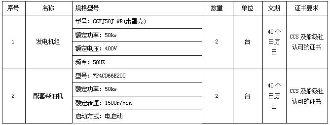 4、中標單位需對招標單位及船東進行培訓、備品備件、主要易損易耗件優惠承諾。