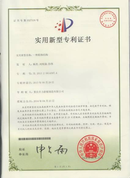 作為西南地區最大的游艇制造商,帝力公司堅持自主研發,以滿足客戶消費需求為目標,不斷吸納世界前沿的游艇設計和生產經營理念,堅持持續創新,先后榮獲外觀設計、實用新型專利證書以及高新技術產品、歐盟CE認證、高端豪華游艇重慶造等稱號。