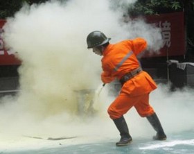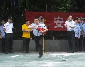 現(xiàn)場比賽共分為4個環(huán)節(jié),第一個環(huán)節(jié)為軍事列隊展示,要求場上的護衛(wèi)方陣軍容整齊,軍姿嚴謹,英姿颯爽,每個人的動作要求協(xié)調(diào)一致,抬手、頓足、轉(zhuǎn)向都流暢自然。第二個環(huán)節(jié)為滅火器4X50米接力,不僅是速度與毅力的考驗,更是要檢驗隊員之間的配合是否默契。第三個環(huán)節(jié)為50米液體滅火,賽場上設置兩個火盆,并模擬著火現(xiàn)場,護衛(wèi)隊員們需第一時間趕赴火盆處,用滅火器等消防器材進行滅火作業(yè),該環(huán)節(jié)不僅模擬真實,更極具觀賞性和刺激性。最后一個環(huán)節(jié)為消防出水操,隊員們被要求在較短的時間內(nèi),快速沖鋒奔襲、配合拋擲水帶等動作,這要求隊員們必須臨危不亂、準確反映和協(xié)調(diào)合作。